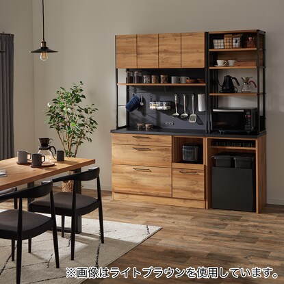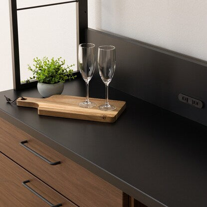 ⽊⽬とブラックカラーを組合せたモダンなデザインのキッチンボードです。