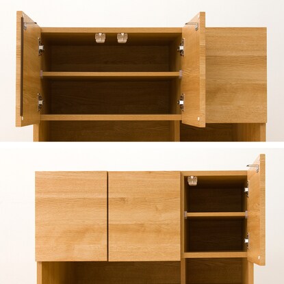 上台は開放部が広く、中身を隠してすっきり収納できる板扉仕様。