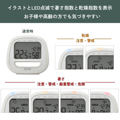 イラストとLED点滅で暑さ・乾燥指数を表示するからお子様や高齢の方でも気づきやすい