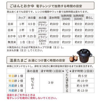 ※温泉たまごを作るときは電子レンジを絶対に使用しないでください。