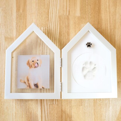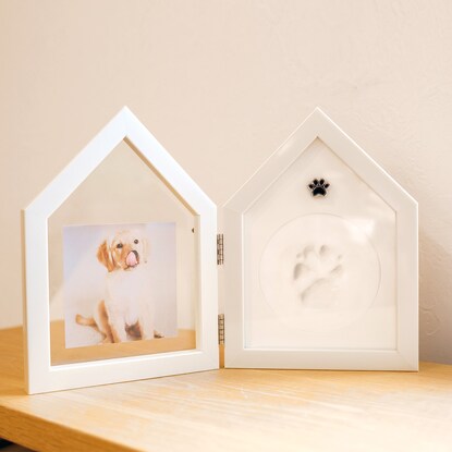 ペットの写真を飾るのにぴったりな足形の装飾つき。