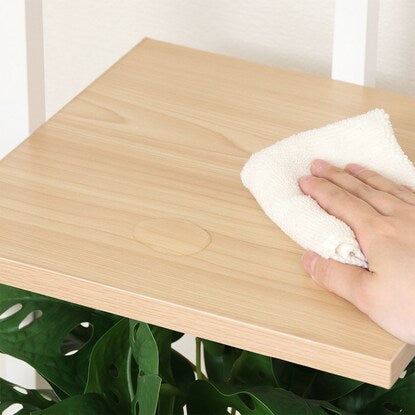 天板には傷や汚れに強いメラミンシートを使用、汚れていてもサッと拭くだけでお手入れ簡単。