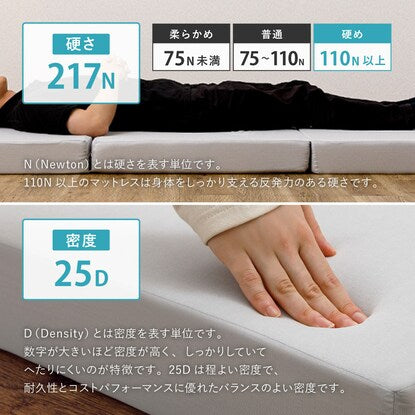 厚さ約10cmで、しっかりとした寝心地です。敷き布団無しで、そのままお使いいただけます。