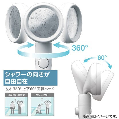 シャワーフックに固定した状態で、上下・左右の角度調整ができます。