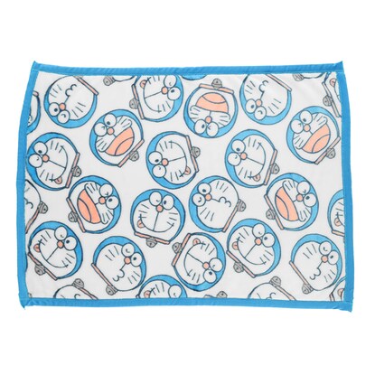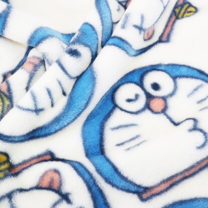 色んな表情のドラえもんがちりばめられた楽しいデザインのひざ掛けです。