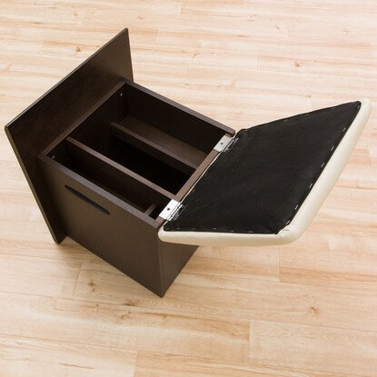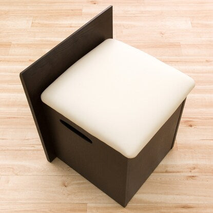 スツールの座面下は収納スペースがあり、座ったままでティッシュが取り出せる、