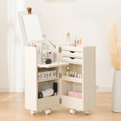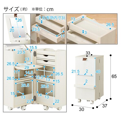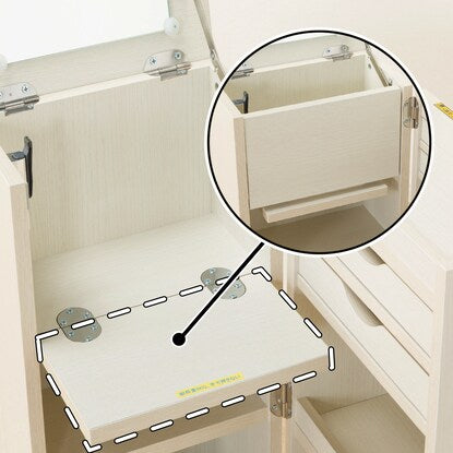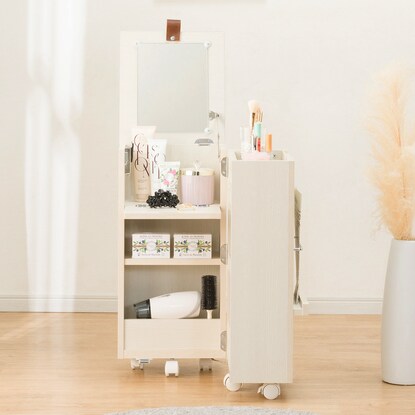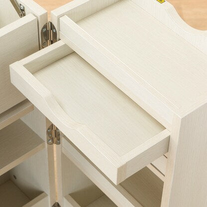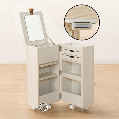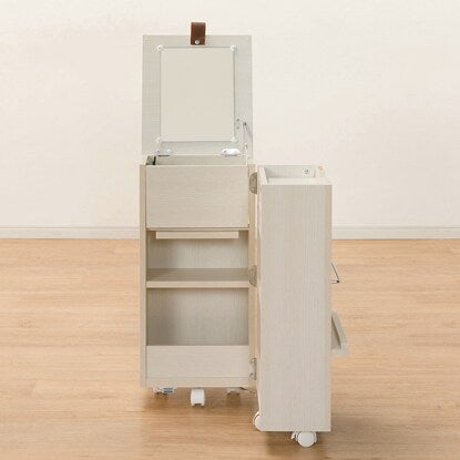 天板を開くとミラーが付いているので、ドレッサーとしてお使いいただけます。