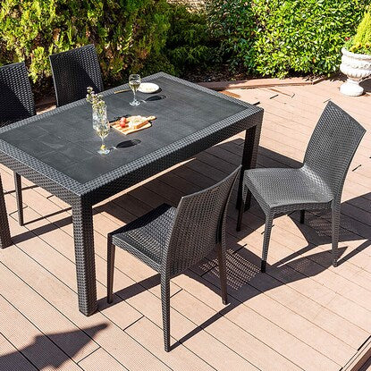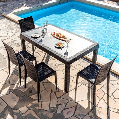 ラタン調ガーデンテーブル+肘無しチェア5点セット(PXY150)