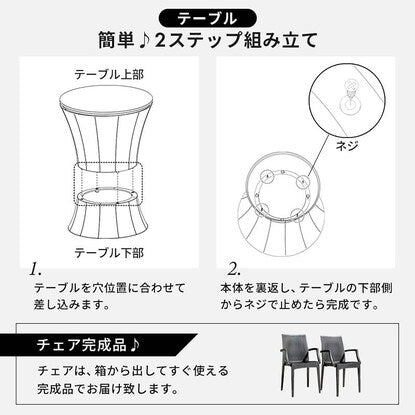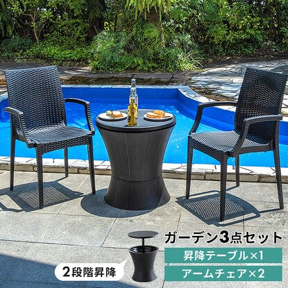 昇降ガーデンテーブル+肘付きチェア3点セット(PXY)