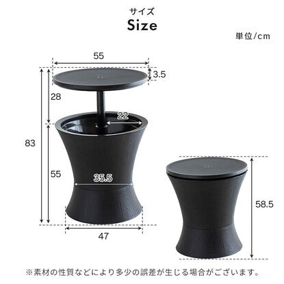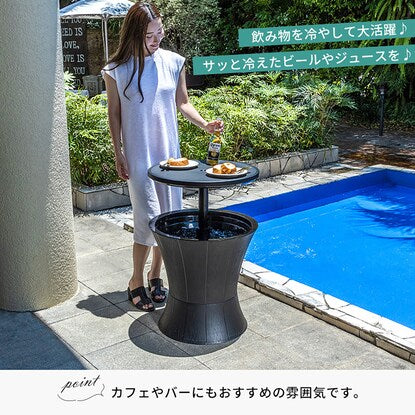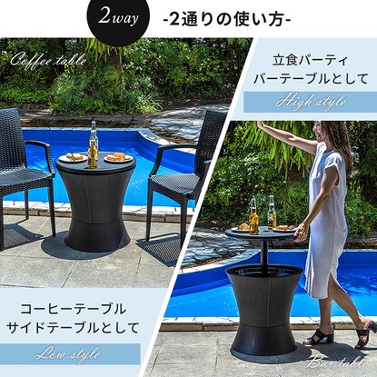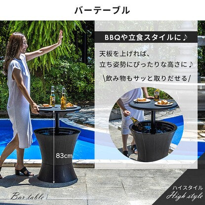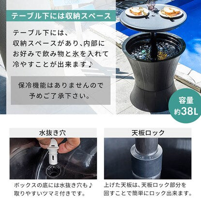 天板は昇降式で天板下には飲み物など収納出来るスペースがあります(保冷機能はございません)