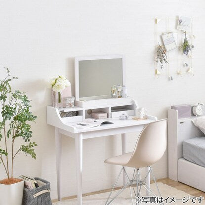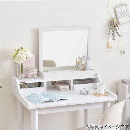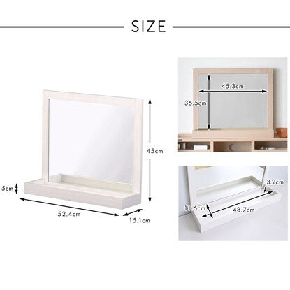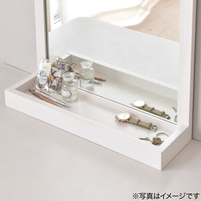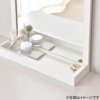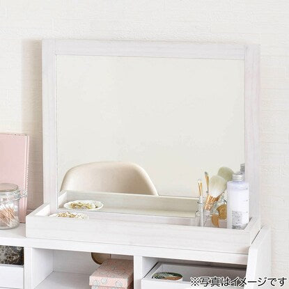 さまざまな場所で使用できる卓上タイプの大きめミラー。玄関のシューズラックの上やデスク、キャビネットなどの上に置くだけでドレッサーが完成。