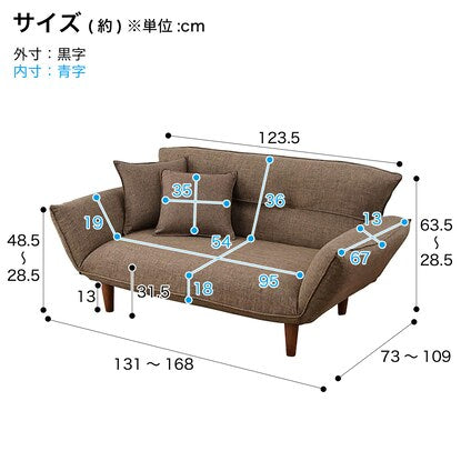2人掛けカウチソファ クッション2個付き(布 BR)