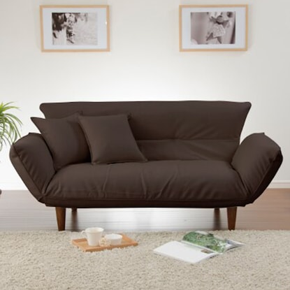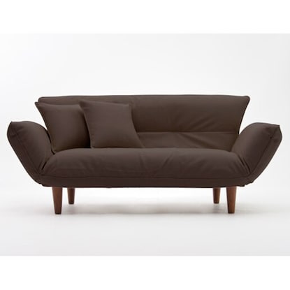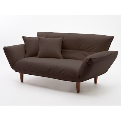 2人掛けカウチソファ クッション2個付き(合皮 BR)