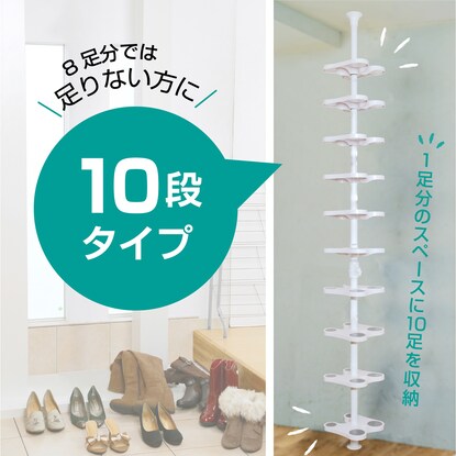 ワンタッチ式 突っ張りシューズラック 10段