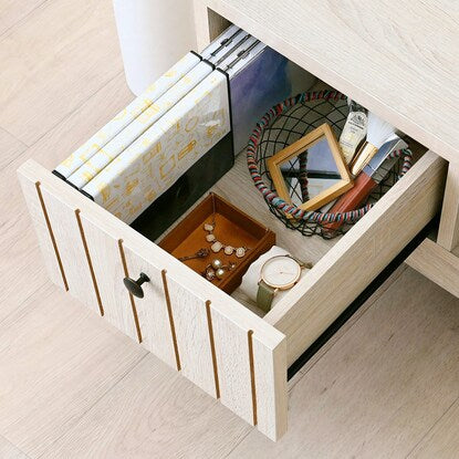 シンプルなデザインに木目柄が引き立つ、前板のストライプがアクセント。