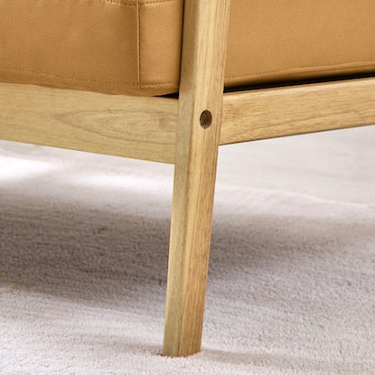 ※使用している小物等は演出品です。天然木フレームで主張し過ぎないシンプルなデザインで置く部屋を選びません。 クッション地は強度に優れ布のように柔らかいレザーテクノロジー(合成皮革)を使用 やや硬めの座面は50cmと奥行があり、ポケットコイル仕様でリラックス出来る座り心地。■座面高 43cm ■素材 フレーム:ラバーウッド クッション部:ポリエステル、ウレタン、ポケットコイル ■お客様組み立て商品 同タイプコーデュロイ地はこちら