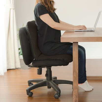 この座椅子は美しい姿勢を保てるようにというコンセプトで開発されました。椅子に座っているとつい姿勢が悪くなりがちですが、ワークチェアや食卓椅子などの上において使用すれば、背筋がまっすぐ、美しい姿勢を意識できます。お使いになる椅子のサイズによりますが、Sサイズが椅子でのご使用に適しています。(大き目の椅子であれば、Mサイズでも使用は可能です。)