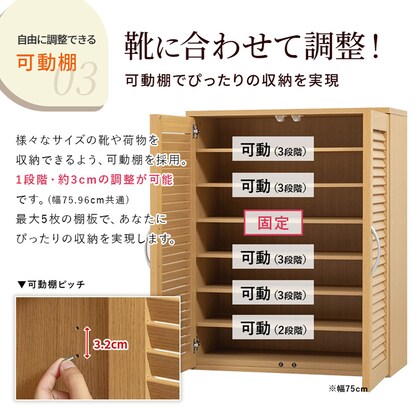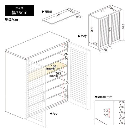 ルーバー扉シューズボックス 幅75cm(TB WH)