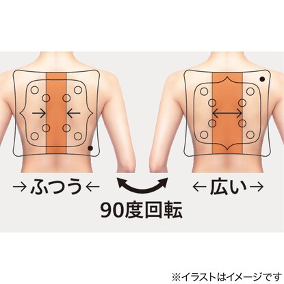 そのまま使えば脊柱起立筋をマッサージ。90度回転させると3cmもみ幅が広がり、広背筋や肩甲骨まわりを狙えます。