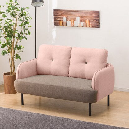 ツートンカラーが可愛らしいコンパクトな2人用ソファ。