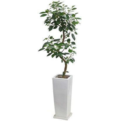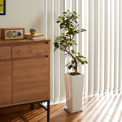 枝を曲げたしなやかな姿が個性的なフィカス・ルビギノーサ (フランスゴム)。 深い緑の葉と、しなやかな曲がりの枝が優雅で上品な雰囲気を持ち、インテリアになじみます。 丈夫で育てやすく、その生命力の強い様子から、「永久の幸せ」という花言葉がつけられています。初心者の方にもおすすめの商品です。 以下の要領でお楽しみください。 ・置かれている環境によっても植物の成長は変わります。 直射日光が当たらない明るい場所やレースカーテン越しに置いて下さい。 ・土の表面が乾いてきたら、鉢底穴から水がでるくらい与えてください。 ・冬季は10度以上の場所での管理が望ましいです。■付属品:品質カード、お手入れのしおり、品質上のトラブルの際の連絡先【サイズ】 鉢:1辺17cm(角型ロング陶器鉢) 植物:高さ(約)115cm※葉色の濃淡は写真と多少異なる場合がございます。 ※商品の色・形態は、多少写真と異なる場合がございます。 ※記載されている以外の写真の小物類は商品に含まれません。 ※お届けの際、植物の生育状況には個体差がございます。 (樹形は写真と異なる場合がございます。サイズは目安となっています。予めご了承ください。)■商品は全国へお届け致します。 <お届け対象外地域> 伊豆大島、八丈島、佐渡島、沖縄本島以外の離島【お届けに関する注意事項】 この商品は凍結の恐れがあるため、一定期間、以下寒冷地域へのお届けを停止させていただきます。 12月1日~翌年3月31日→北海道 12月15日~翌年3月15日→青森県・岩手県・秋田県<注意事項> ・生の植物のため、お客様のご都合による返品はお受けできません。 ・商品の保管期間はお届け日を含め3日間です。必ず保管期間内でのお受け取りをお願いします。(保管期間を過ぎて弊社に返品された場合、返金・無償の再配達は出来かねますので予めご了承ください。) こちらの商品は配送日確定後、メールにてご連絡します。それ以降の注文キャンセルは、お承り出来ません。
