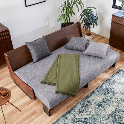 「座る」「寝る」「くつろぐ」を兼ね備えた「ごろ寝ソファ」。ソファ本体を動かすことなく、座面を手前にスライドさせるだけで楽にベッドへチェンジできます。