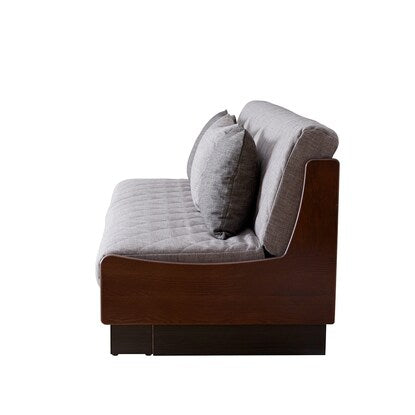 左右のフレームは、天然木の温もりを感じさせる、オーク無垢材使用。角丸デザインでお子様がいるご家庭でも安心。