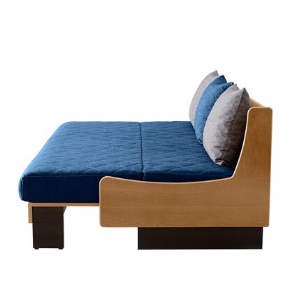 「座る」「寝る」「くつろぐ」を兼ね備えた「ごろ寝ソファ」ソファ本体を動かすことなく、座面を手前にスライドさせるだけで楽にベッドへチェンジできます。