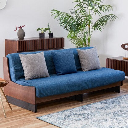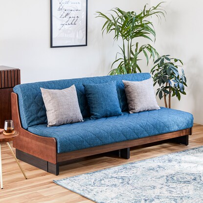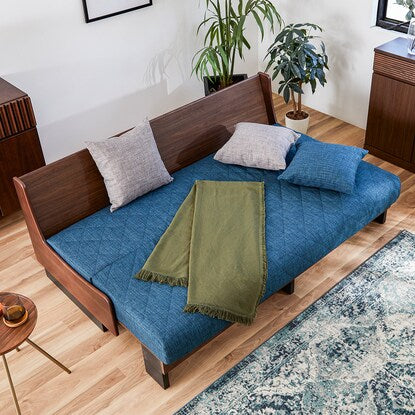 「座る」「寝る」「くつろぐ」を兼ね備えた「ごろ寝ソファ」ソファ本体を動かすことなく、座面を手前にスライドさせるだけで楽にベッドへチェンジできます。