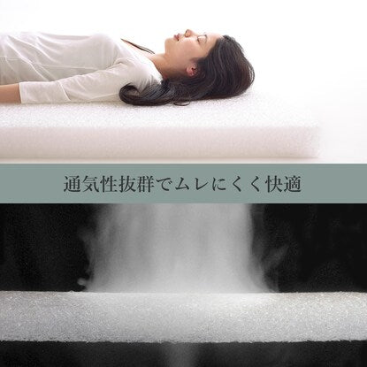 座面中身はマットレス中材にも使われている高反発・耐久性のあるポリエチレン樹脂100% ムレにくく、高反発マットレスと同じ座り心地・寝心地を体感出来ます。