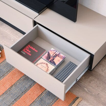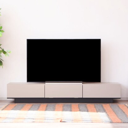 グレージュカラーで無駄のないシンプルなデザインのTVボード。