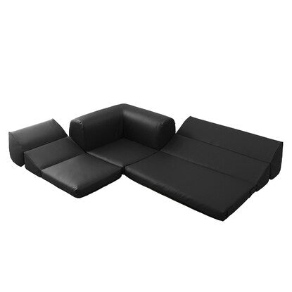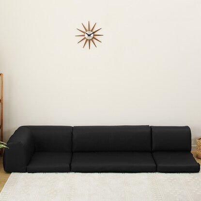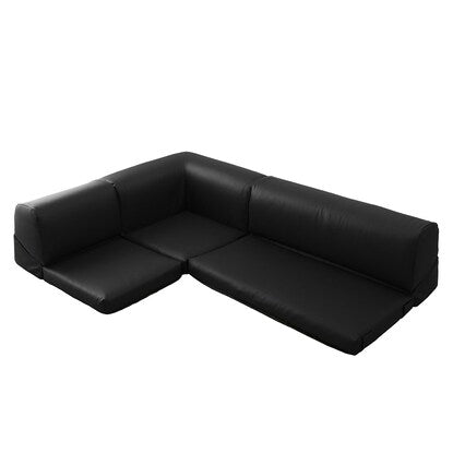ポケット付きロータイプコーナーソファ3点セット(合成皮革 BK)