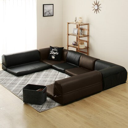※画像はダークブラウンを使用しています。 ■高級感あふれる合成皮革タイプ。 ■タオルや布でサッと拭き取るだけで汚れが落ちるので、お手入れも簡単です。 【各サイズ(約)】 ------------------------------------------------- ・1人用 :幅49×奥行75~101×高さ30~36cm ------------------------------------------------- ・2人用 :幅99×奥行75~101×高さ30~36cm ------------------------------------------------- ・コーナー :幅75×奥行75×高さ36cm ------------------------------------------------- ・共通サイズ:座面の高さ8cm、座面奥行き49cm ------------------------------------------------- ■座面は底付き感の少ない厚さ8cmのボリュームタイプ。 ■分割式だから左右どちらのコーナーにもお使い頂けます。 ■ローテーブルやコタツなどにも最適です。 ■コーナタイプには背面に便利なポケット収納付き。(×6個) ■底面には、ズレ防止の面テープ付き。■背もたれを倒すと、横になるのに丁度良い角度になります。 ■布タイプもございます。
