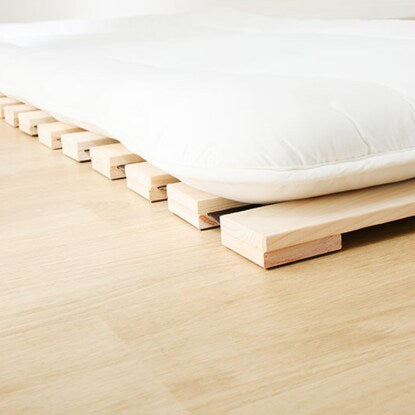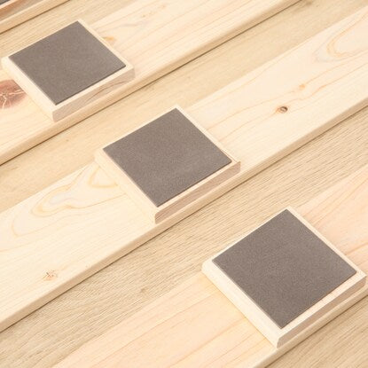 通気性に優れたすのこは睡眠中の汗による溜まりやすい湿気も解消できるため、カビ対策に効果的。湿度の高い日本の風土にあった無塗装の無垢の檜材を採用しました。桟・脚部にそれぞれ厚さ1.1cmの国産檜を贅沢に使用した、しっかりボリュームタイプ。檜の効用でマットレス・お布団をより衛生的に保てます。