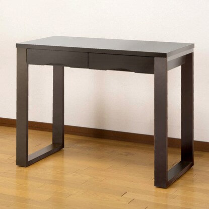 タモ突板の木目がうつくしい天然木デスク 奥行45cm(幅90cm ダークブラウン)