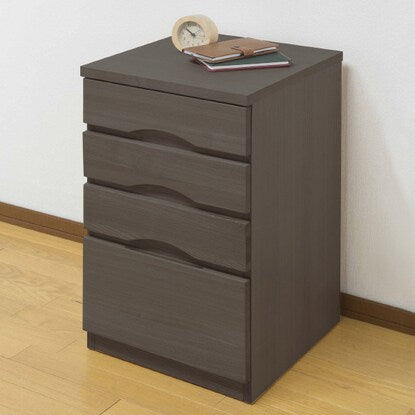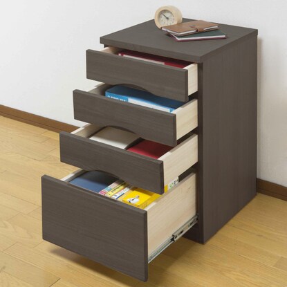 タモ突板の木目がうつくしい天然木キャビネット 4段(奥行45cm ダークブラウン)
