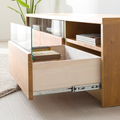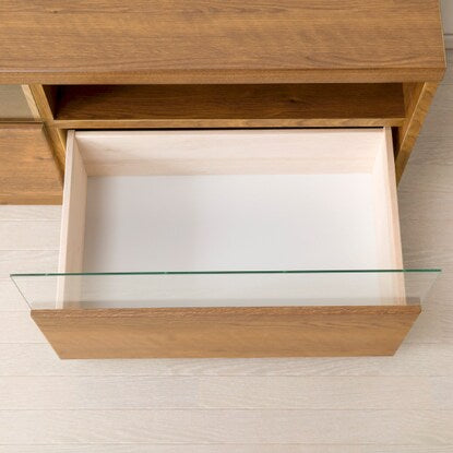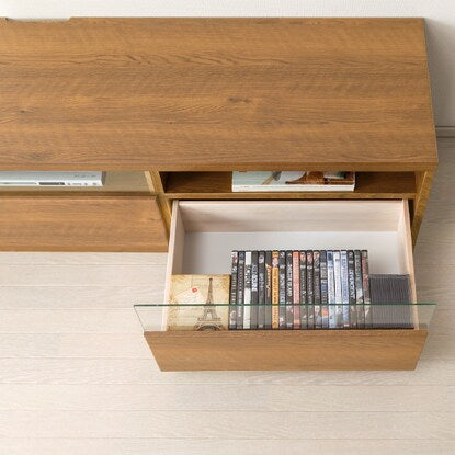 AV機器スペースがガラスで覆われているので前面から埃が入りにくくなっています。