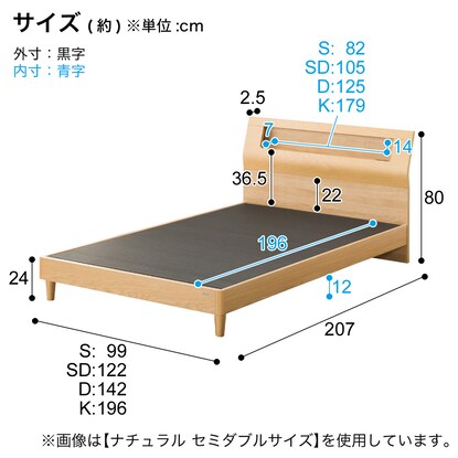 ※コンセントの位置はS・SDサイズは右側、D・Kサイズは中央になります。