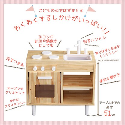 天然木 おままごとキッチン(ナチュラル 幅60cm)