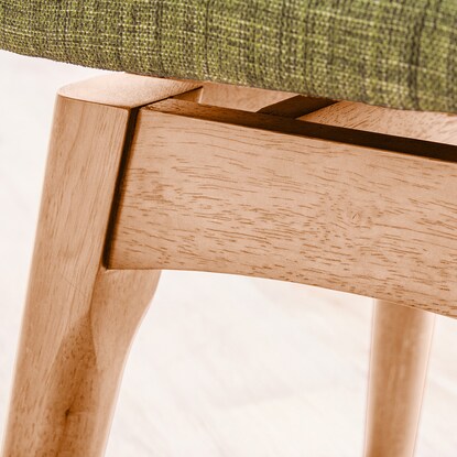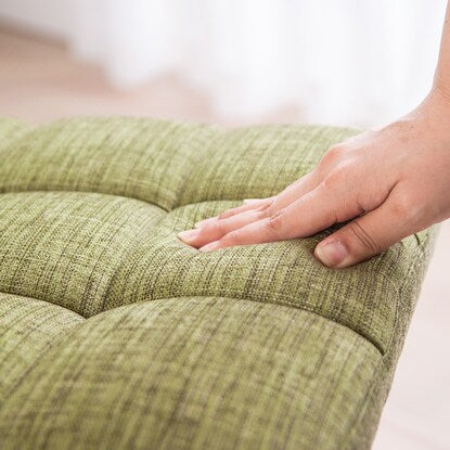 クッションは手触りが良く、快適な座り心地。ファブリックで背の裏側に縫い目のないデザインです。