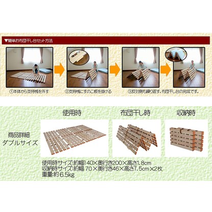 ダブル 軽量4つ折り桐すのこベッド