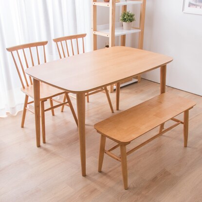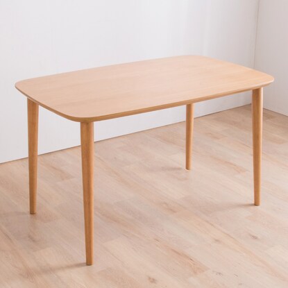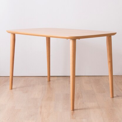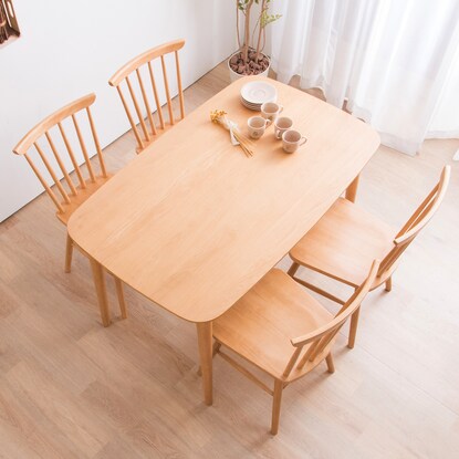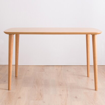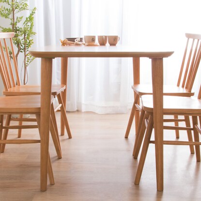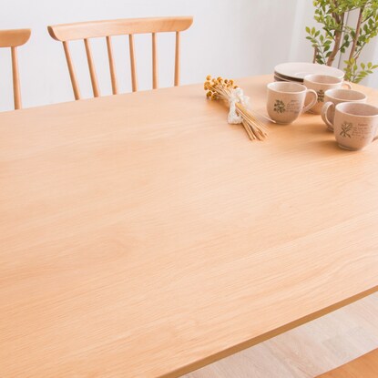 木目が綺麗なオーク材の突き板のダイニングテーブルです。 飽きのこないシンプルデザインで、丸みのある角が柔らかい印象を与えます。 天板は汚れに強いウレタン塗装。 傷防止の足裏フェルト付き。