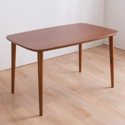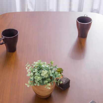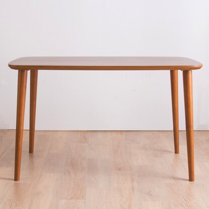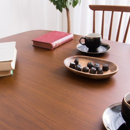 木目が綺麗なオーク材の突き板のダイニングテーブルです。 飽きのこないシンプルデザインで、丸みのある角が柔らかい印象を与えます。 天板は汚れに強いウレタン塗装。 傷防止の足裏フェルト付き。