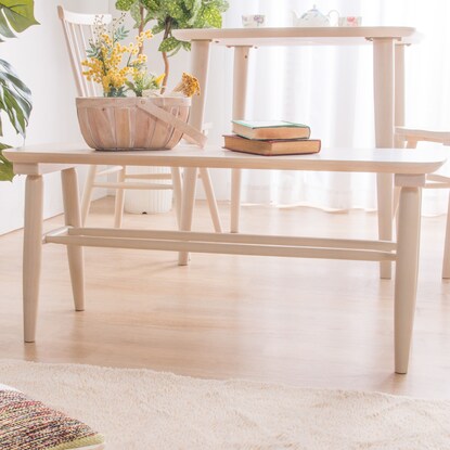 天然木(ラバーウッド)を使用した、ぬくもりのあるベンチです。 カフェ風のダイニングを演出します。 便利な収納棚付き。 急な来客用にも対応できます。 軽量で持ち運びラクラク。 木製の座面は、食べこぼしなどもサッと拭くだけでお手入れ簡単。