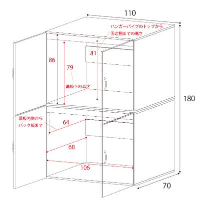 幅 :106cm 奥行:68cm(一部64cm)高さ :86cm(天井まで)/ 81cm(ポール上部まで)/ 79cm(幕板下まで)