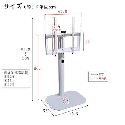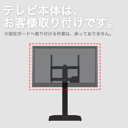 【納期について】 ・実際のお届け日は、カート投入後の注文内容の確認画面をご確認ください。 ・納期が遅い商品を同時購入した際、最短のお届け日が遅い商品と同日になってしまう場合は、該当商品をカート内で、削除or後で買うを選択し除外する事で解消します。 ・店舗受け取りを希望(選択)される際は、お客様宅への配送より数日遅いお渡しとなります。 ※使用している小物等は演出品です。取り付け可能なテレビの機種は、テレビ対応表にてご確認ください。 32~65V型対応 重量40kgまで。 ボードに置くよりも画面が壁側に近づくので、お部屋を広く使えます。 壁掛けタイプのような施工が不要。賃貸でも安心してお使いいただけます。 壁面でもコーナーでも設置いただけます。 台座の角を落としてあるのでコーナーに置いた際、より壁との隙間を少なくして設置できます。 コード類は八角形の支柱の中を通して隠せる仕様です。 ※コーナーの壁に隙間なく設置できるサイズは32型です。 見やすい角度に自由に画面を向けられるスイング機能付き(240度)。 取り付けできない機種もあります。 ※ご購入前にご使用になるテレビの仕様確認をお願いします。 こちらの商品はメーカーの倉庫より出荷後、発送完了の旨をメールにてご連絡します。それ以降の注文キャンセルは、お承りできません。 一度お受取りの上で、「問合せフォーム」にて返品をお申し出ください。