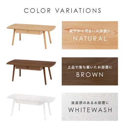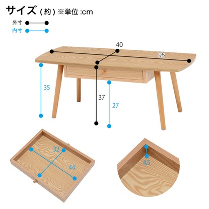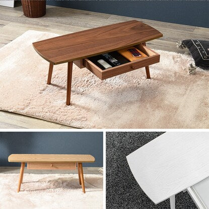 両サイドがまるいセンターテーブル 引き出し付き 幅95cm(NA)