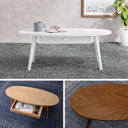 楕円形のコロンとしたフォルムに天然木の美しい表情が加わった、お部屋のアクセントになるセンターテーブル。様々なテイストのインテリアに合わせやすく、季節を問わずお使いいただけるシンプルなデザインに仕上がっています。