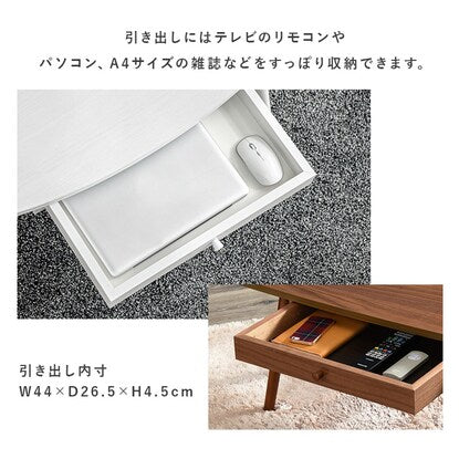 コンパクトでも収納力が備わっており、散らかりやすいリビング周りもスッキリ。引き出しの中はメラミンシートを使用しているので、傷に強い耐久性があります。両側から引き出せる使い勝手の良さも魅力です。