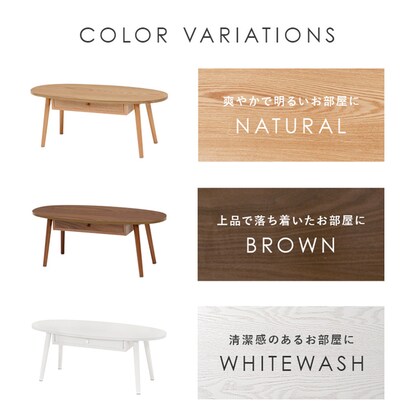 引き出し付き楕円形センターテーブル 幅95cm(BR)